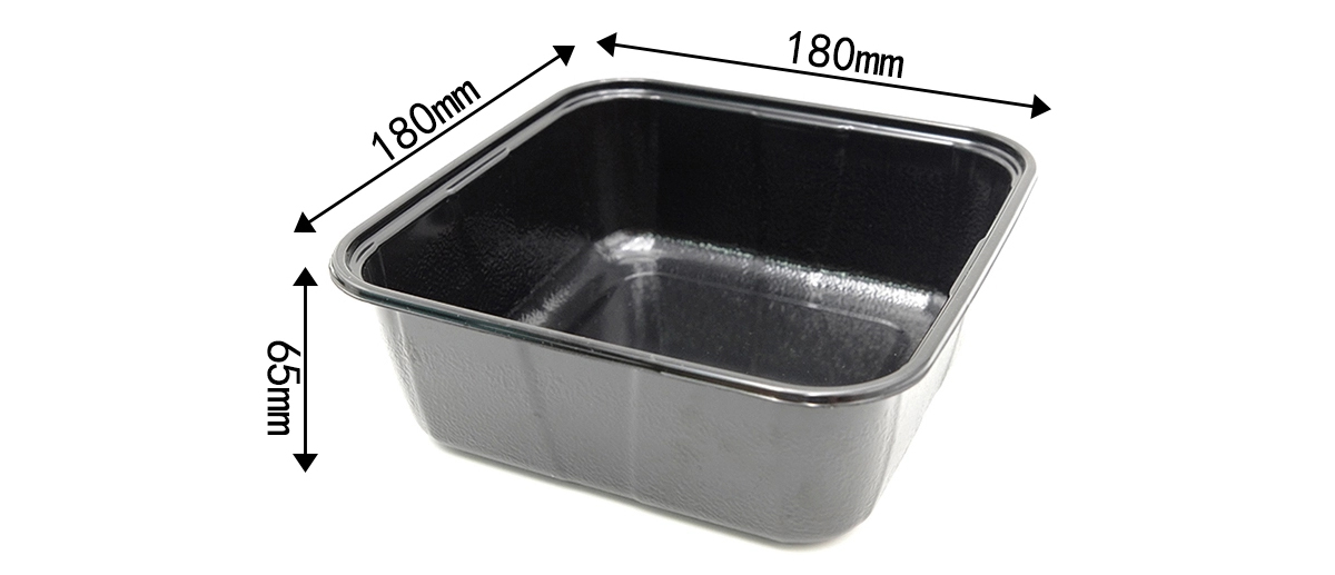 Abmessungen | Deckel: 183,6 x 183.6 x 9,5 mm Tablett: 180 x 180 x 65 mm, inneres Tablett: 172 x 172 x 30 mm |