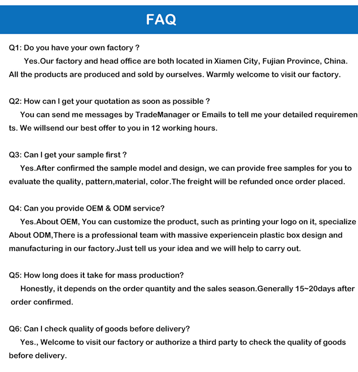 | Mustergebühr | 60g | Polybeutel und Karton, 10 Sätze/Beutel, 2 Beutel/Karton. 20 Deckel + 20 Schalen + 20 Innenschalen pro Karton ![]() ![]() |