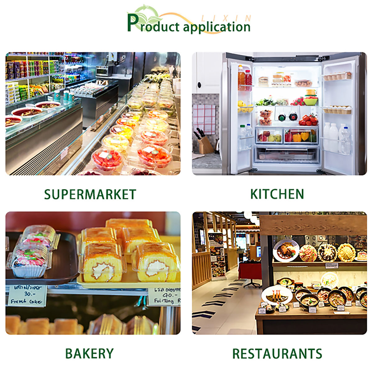 Material: Hergestellt aus durchsichtigem, lebensmittelechtem Einweg-PET-Kunststoff, sodass Sie die Lebensmittel im Inneren direkt sehen können.